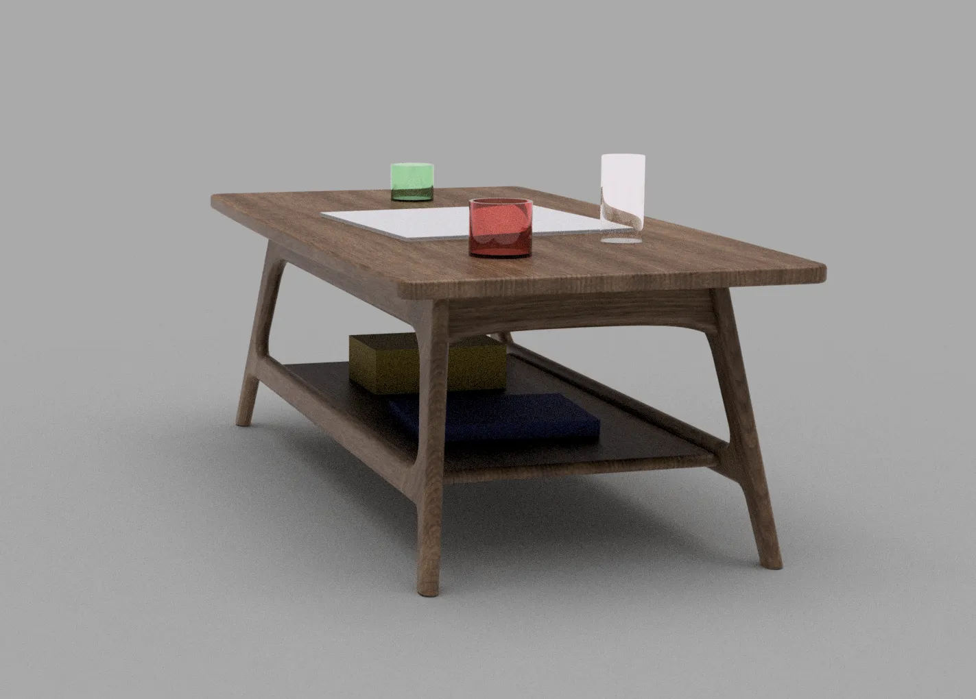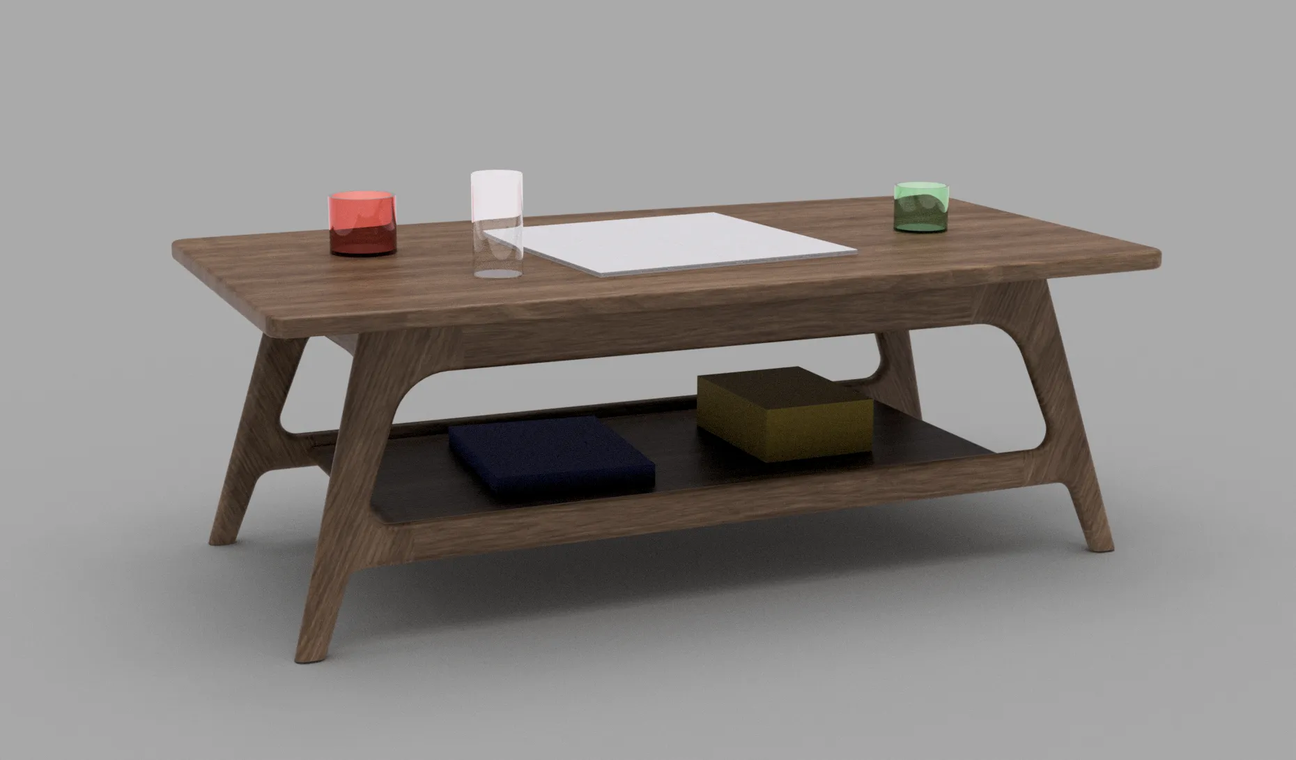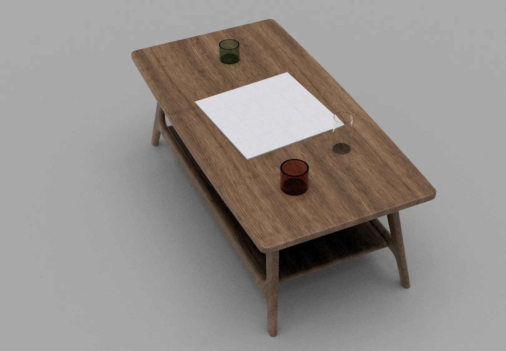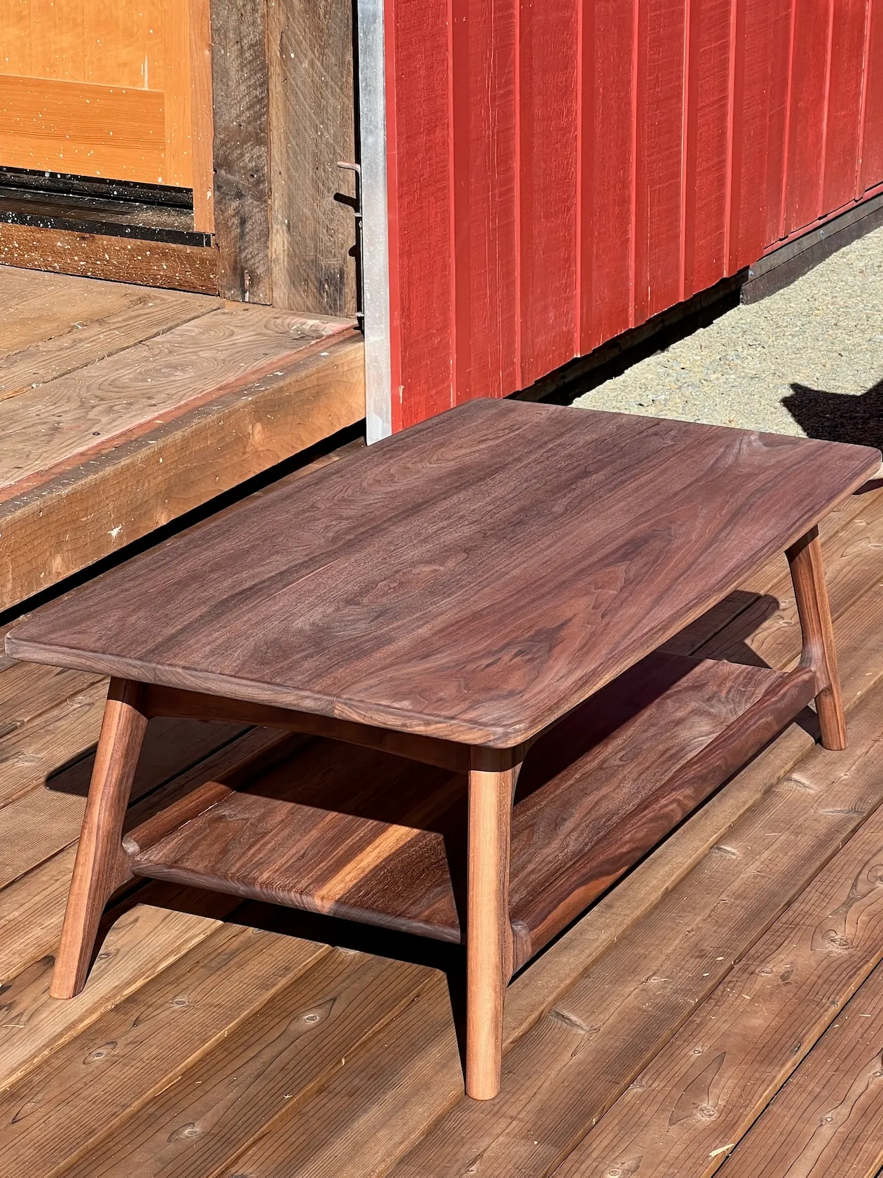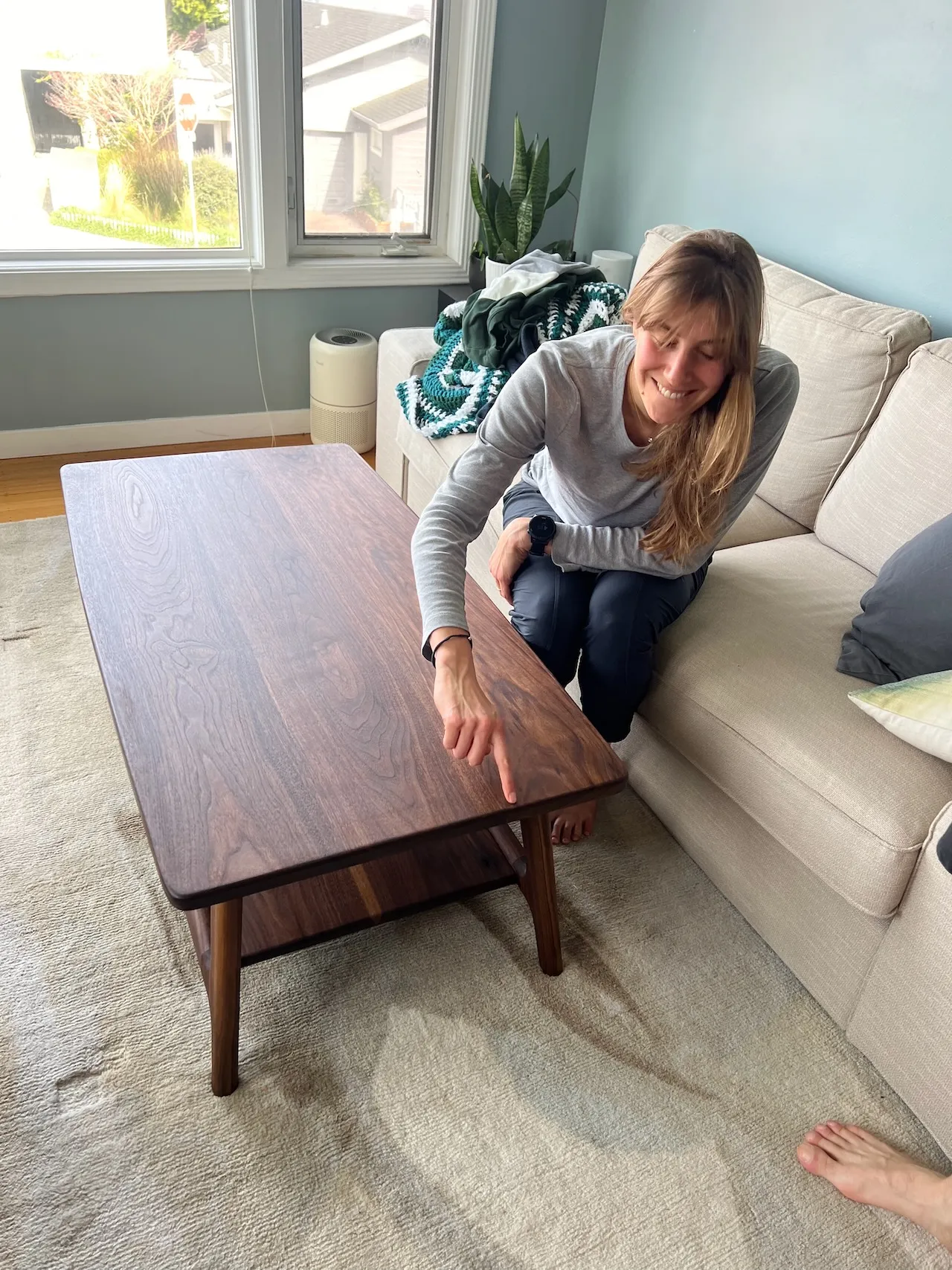 I pretty quickly settled on a mid-century aesthetic with a functional design: a large top big enough for board games, and a shelf below (to easily clear off the table for food, or said board games).