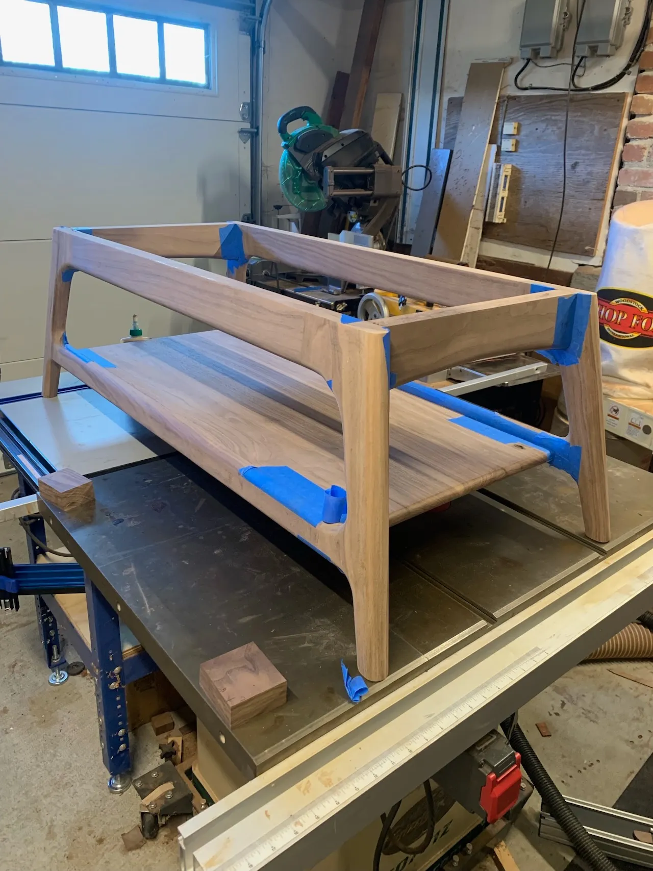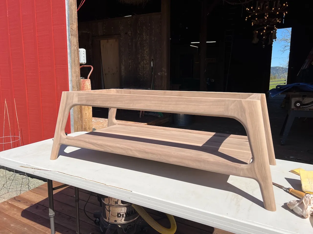 Wow, this is where it felt like it was coming together! Getting roundovers carved into the leg assemblies and sanding all the interfaces between pieces was the moment the piece started to evoke the feeling I'd imagined.