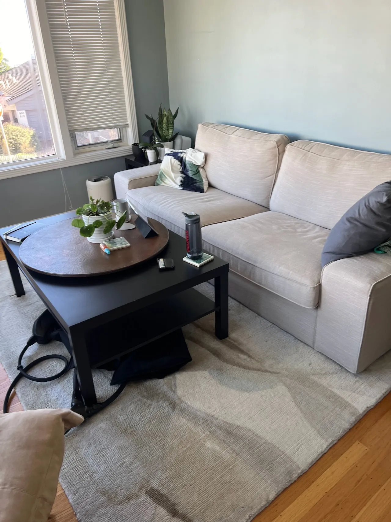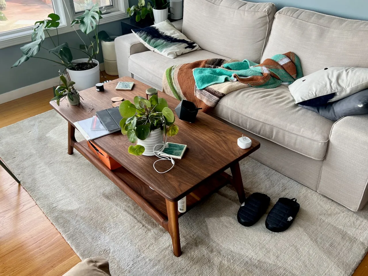 The coffee table I made — not sanitized, but in its proper state: being used!