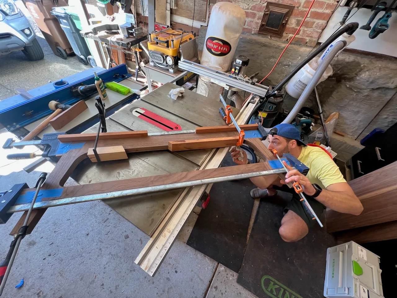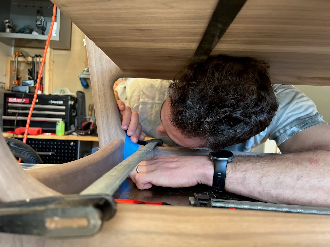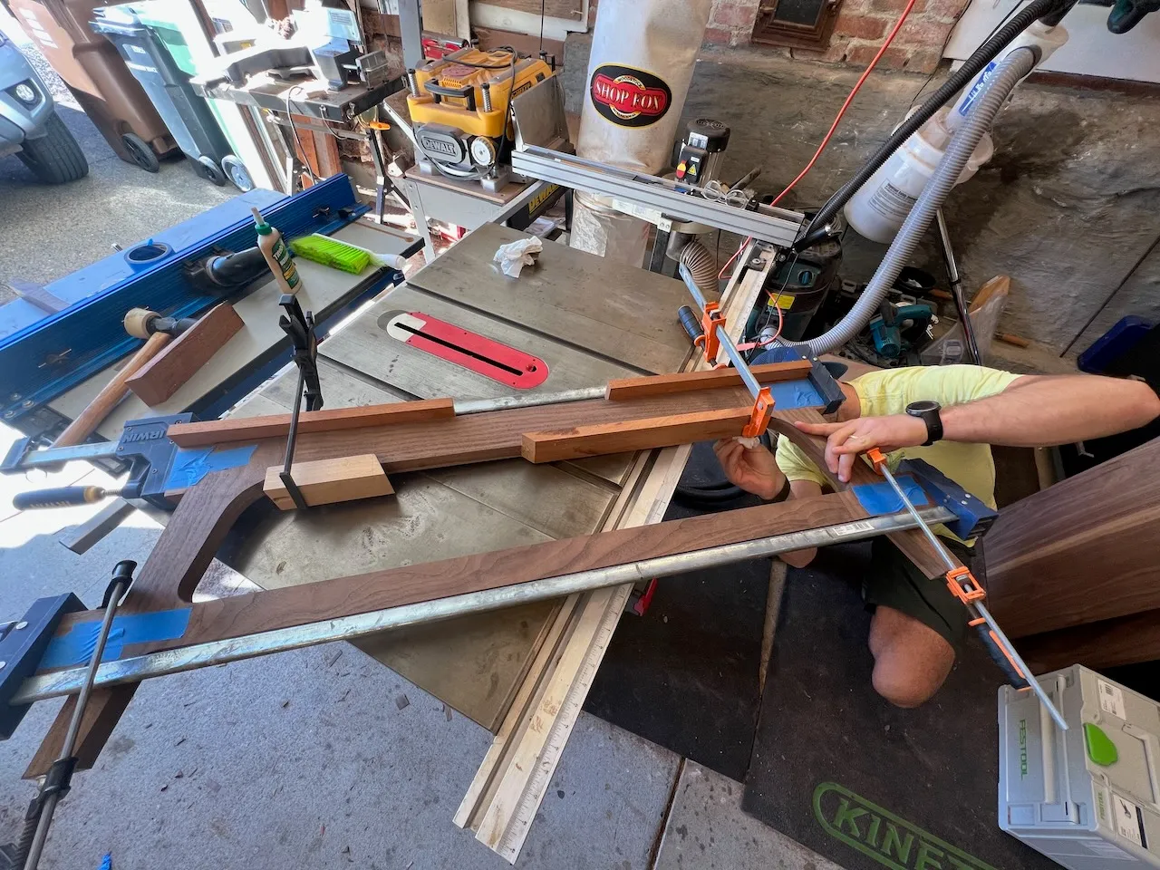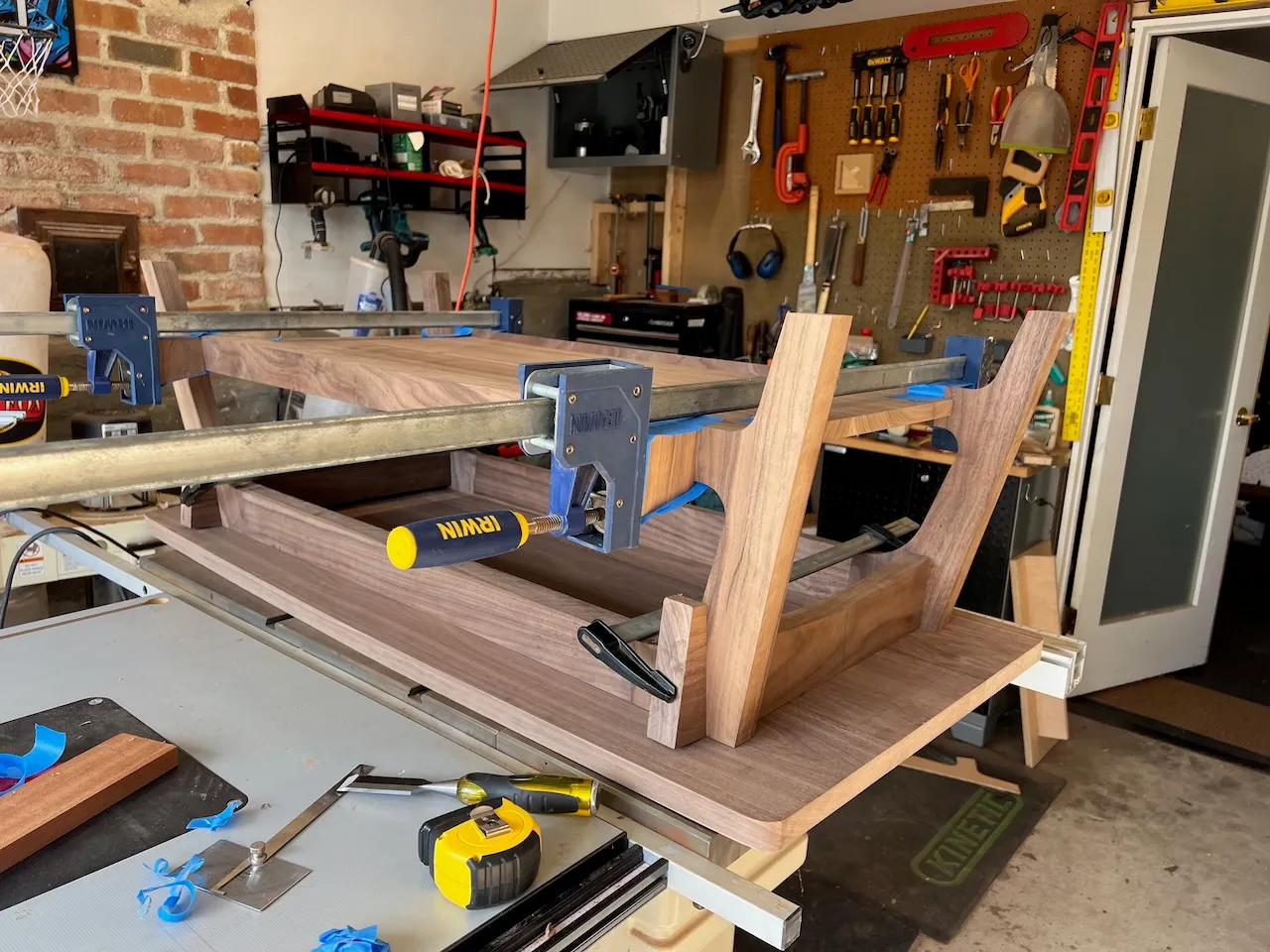 This was still one of my first glue-ups, but since then, I've still never had a glue-up that wasn't stressful to some degree or another. Still, our prior dry fit helped ease the worst of my anxiety here. So did the help!