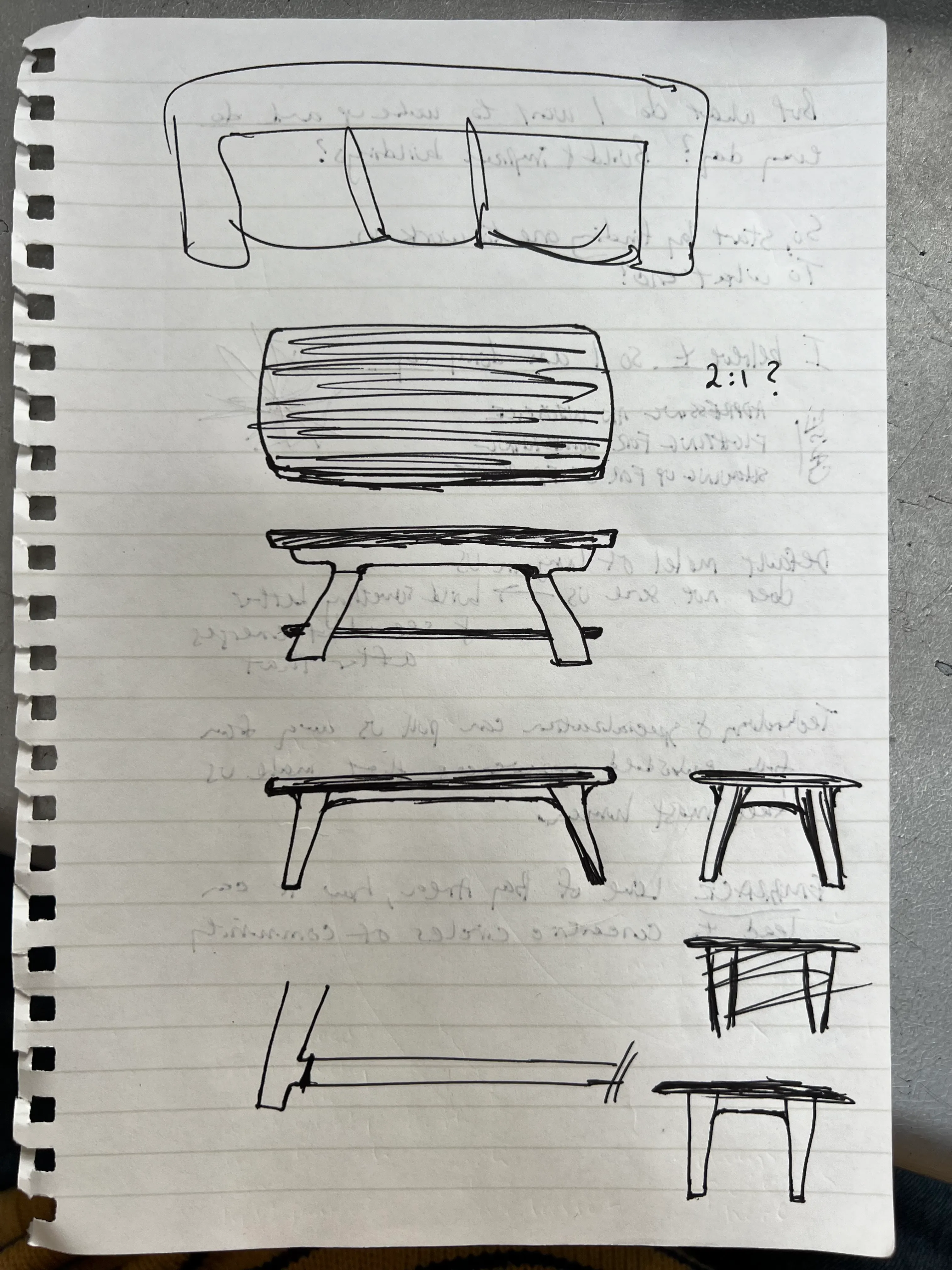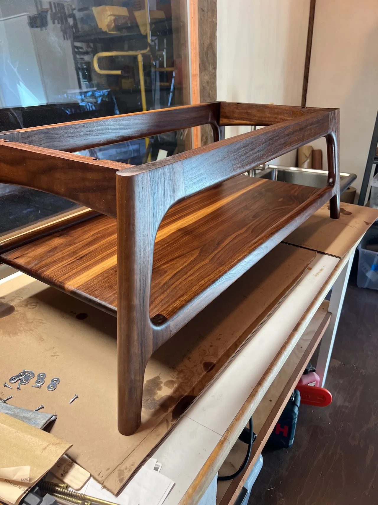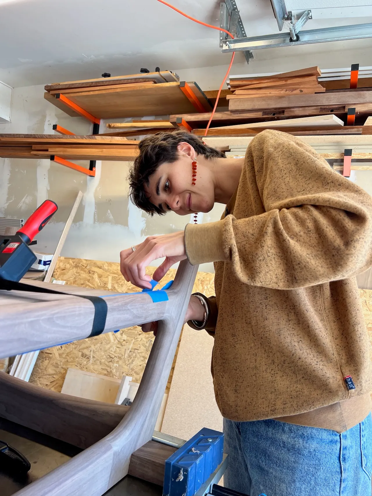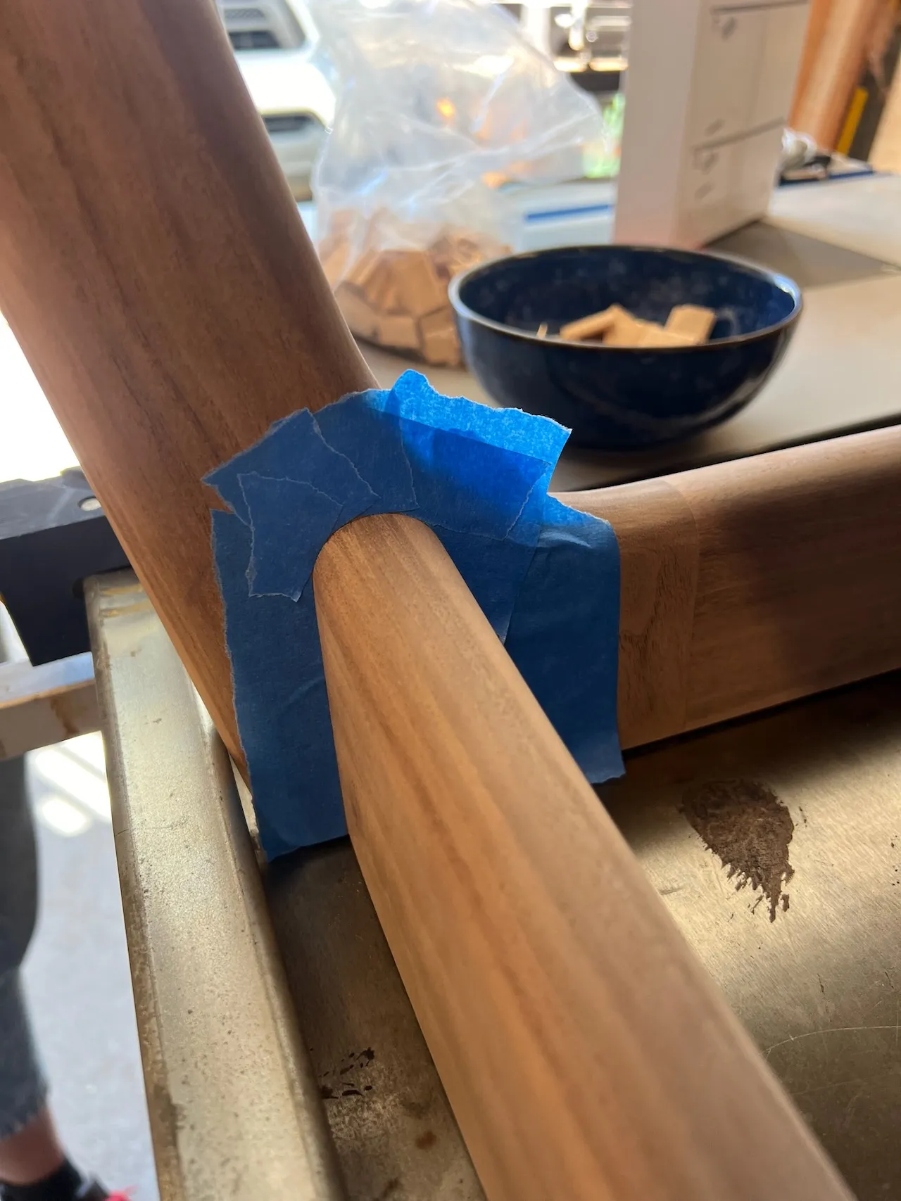 Not pictured: a real team maneuver on the bandsaw to cut subtle arcs into the sides of the (large, heavy) table top.