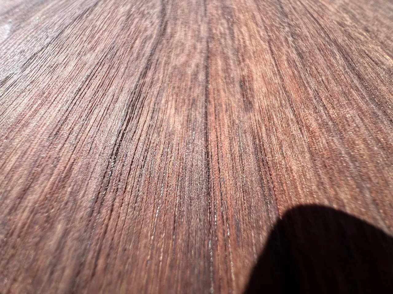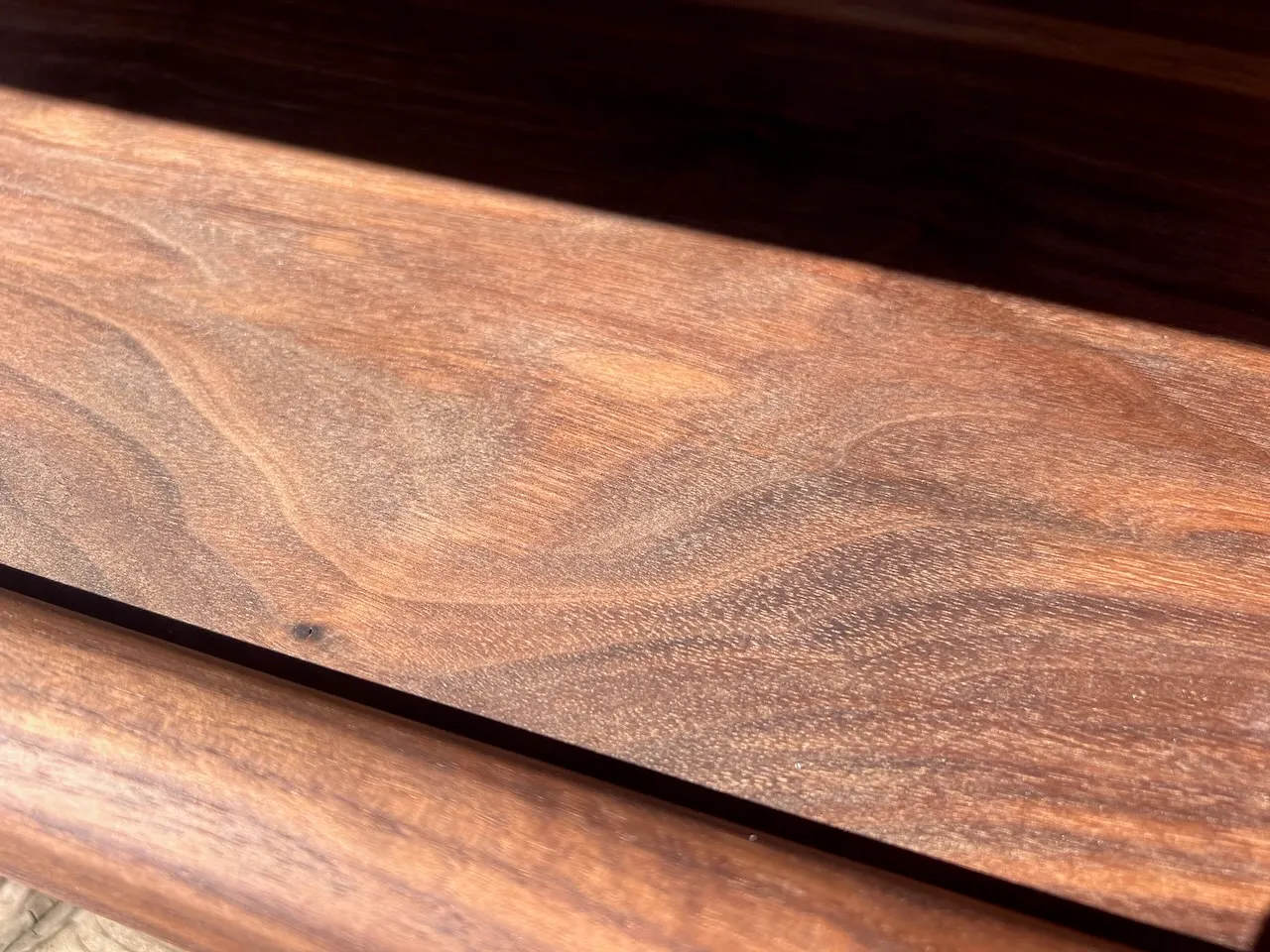 After three coats of Simple Finish, I was dismayed to see a "dusty" quality to the table, which appeared to result from wax settling into the open grain of the walnut, especially on more figured areas (end grain).