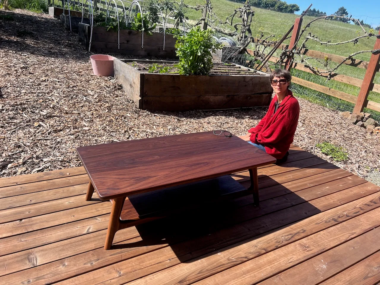 My favorite part of the table ended up being the sapwood contrasts, which I hadn't included in my original design. If I could change one thing about the table, I'd try some kind of tapered edge on the side of the table top instead of the simpler flat edge with small roundovers.