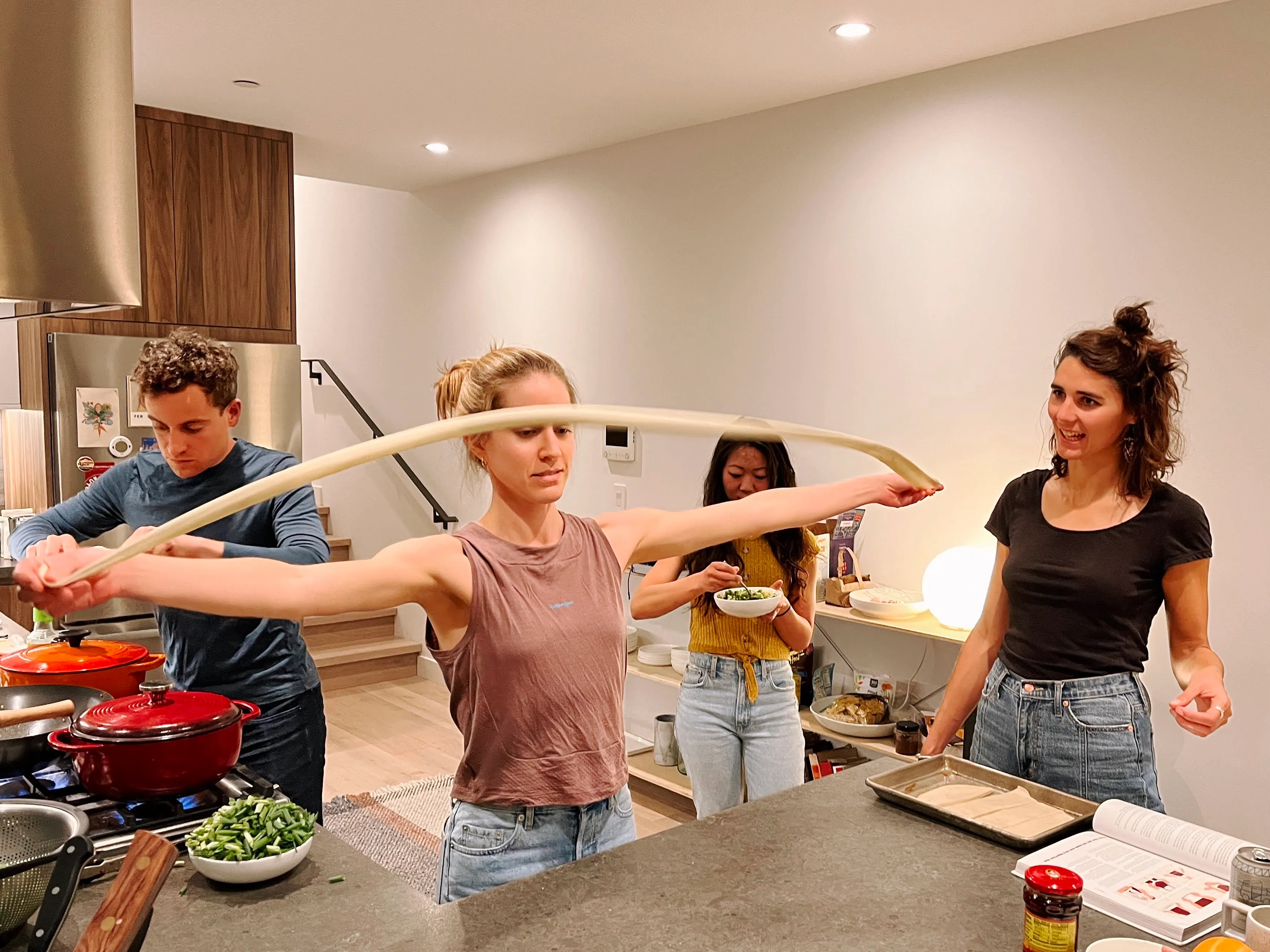 A few friends came together to make Hand-pulled noodles. Fun, messy, playful, tasty.