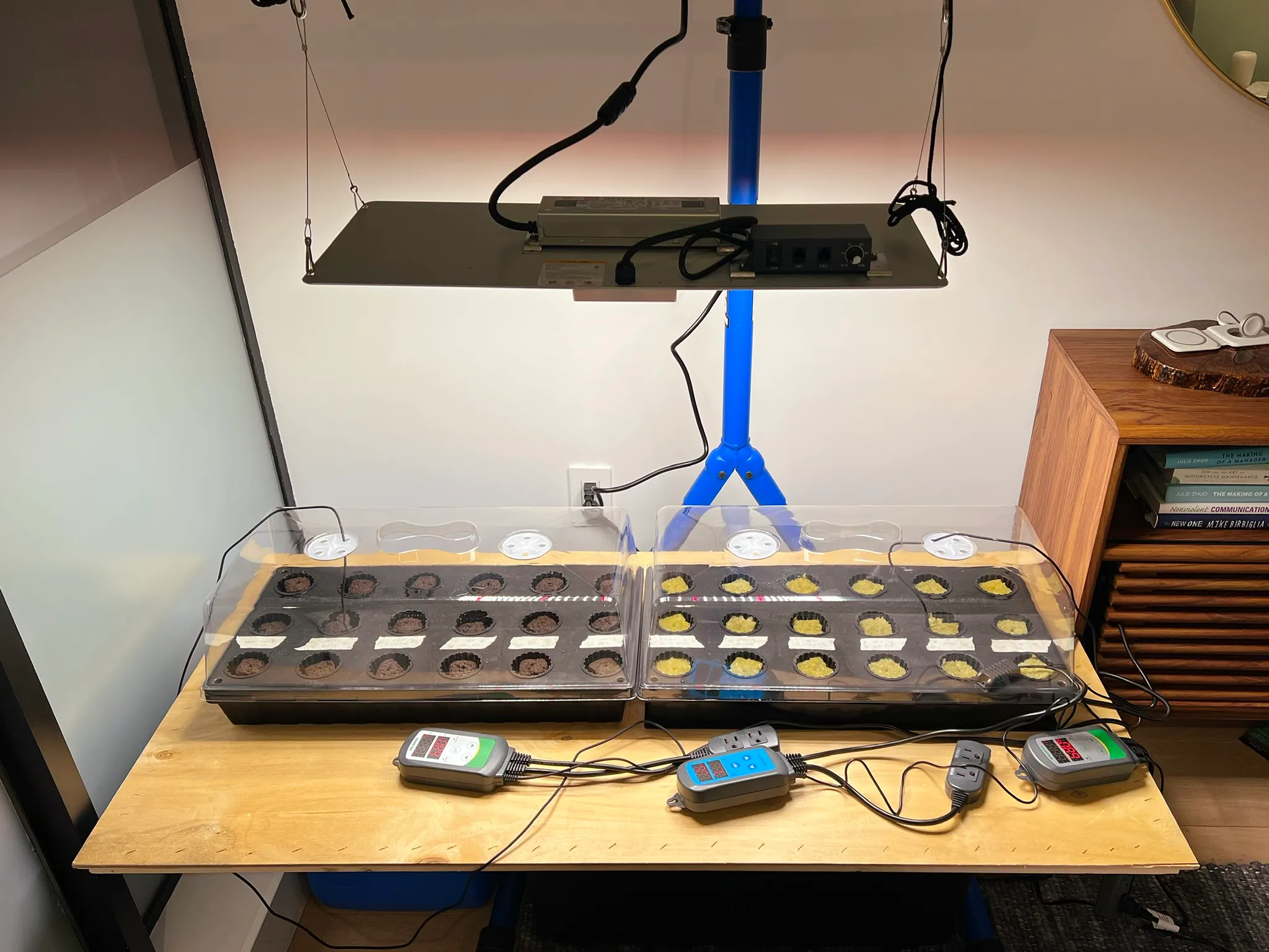 I've thought about growing leafy greens and herbs for awhile because I eat so much salad, buy so much lettuce, and waste so much plastic. My friend Steve introduced me to Home hydroponics which has some benefits over soil: you can do it inside, no pests, no mess. I created a scrappy setup in my room and germinated my first seeds this month.