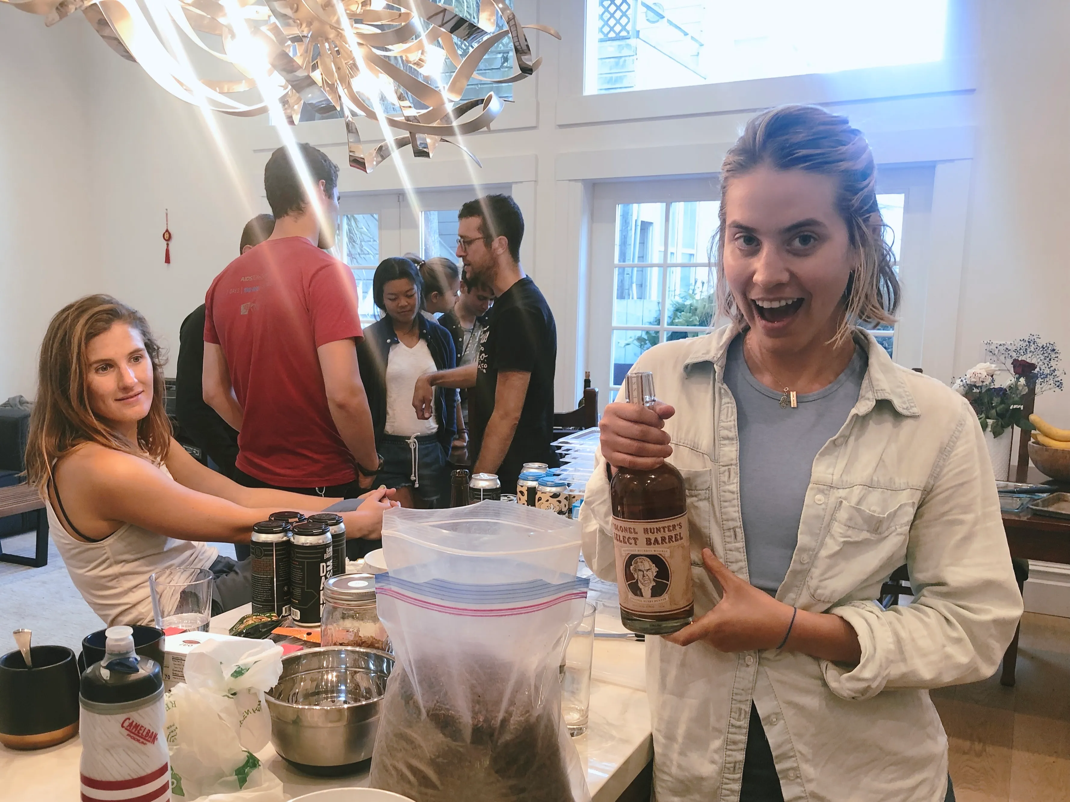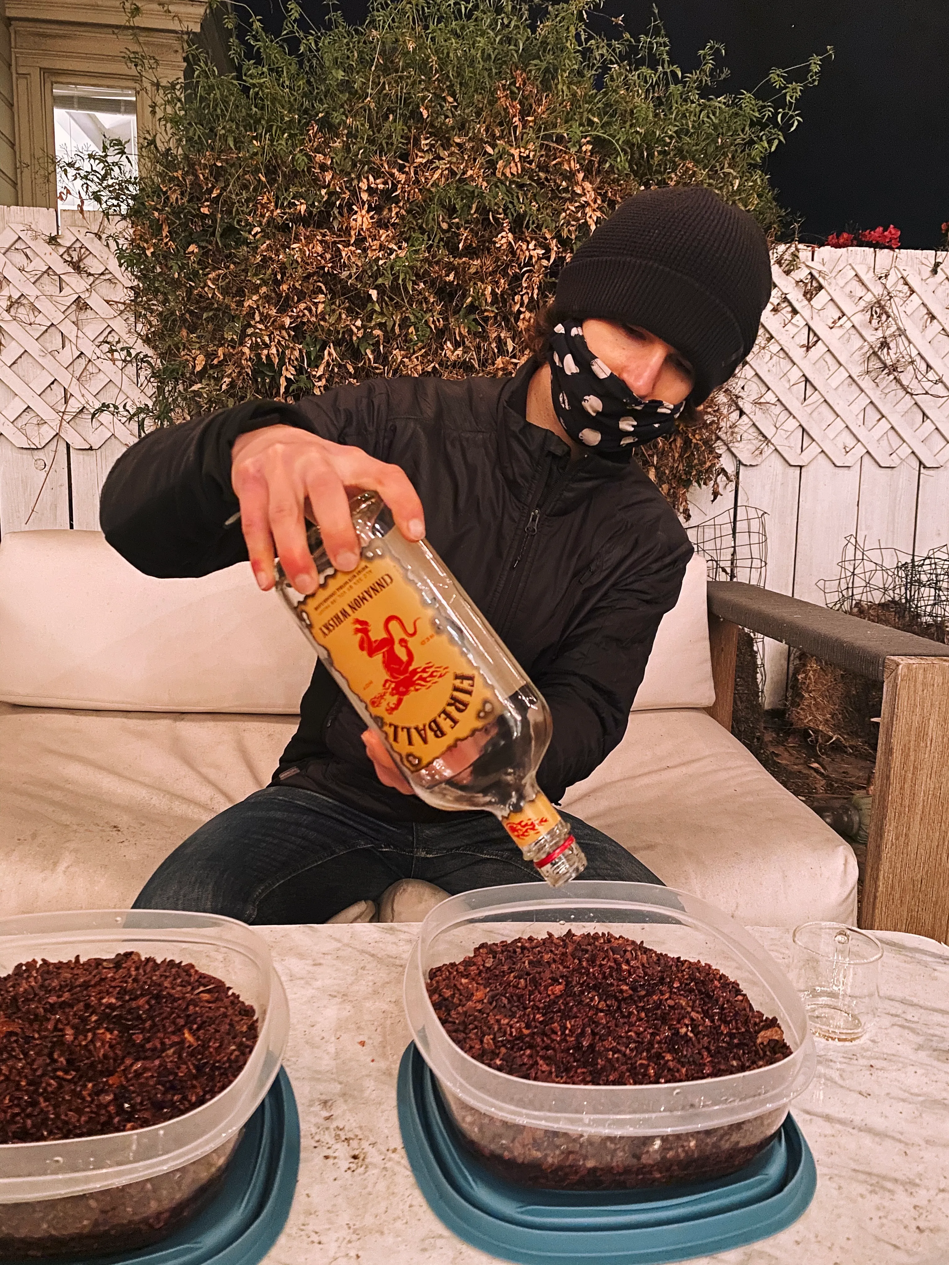 Alcohol-flavored chocolate bars are delicious and it's really fun to walk into a spirits store and think of the possibilities. We've tried whiskey, rum, mead, dark beers, and even Fireball! I've also seen IPA and Mezcal-flavored bars sold in stores. Our first attempt was a whiskey bar and I thought that we'd end up with both whiskey-flavored nibs and nib-flavored whiskey, but it turns out that those nibs are thirsty and soak up most everything! And whatever liquid was left tasted awful, so if you want chocolate-infused whiskey, find a different technique. I should mention that since a batch of chocolate can drink up an entire bottle of whiskey, this method is expensive, adding about $1/bar in material costs. Still, we don't make chocolate to make money, and we don't make enough to spend that much. My favorite alcohol infusions to date have used campfire whiskey (subtly smokey!) and apple pie spiced mead (fruity up-front, with a rich honey middle and lingering spice).