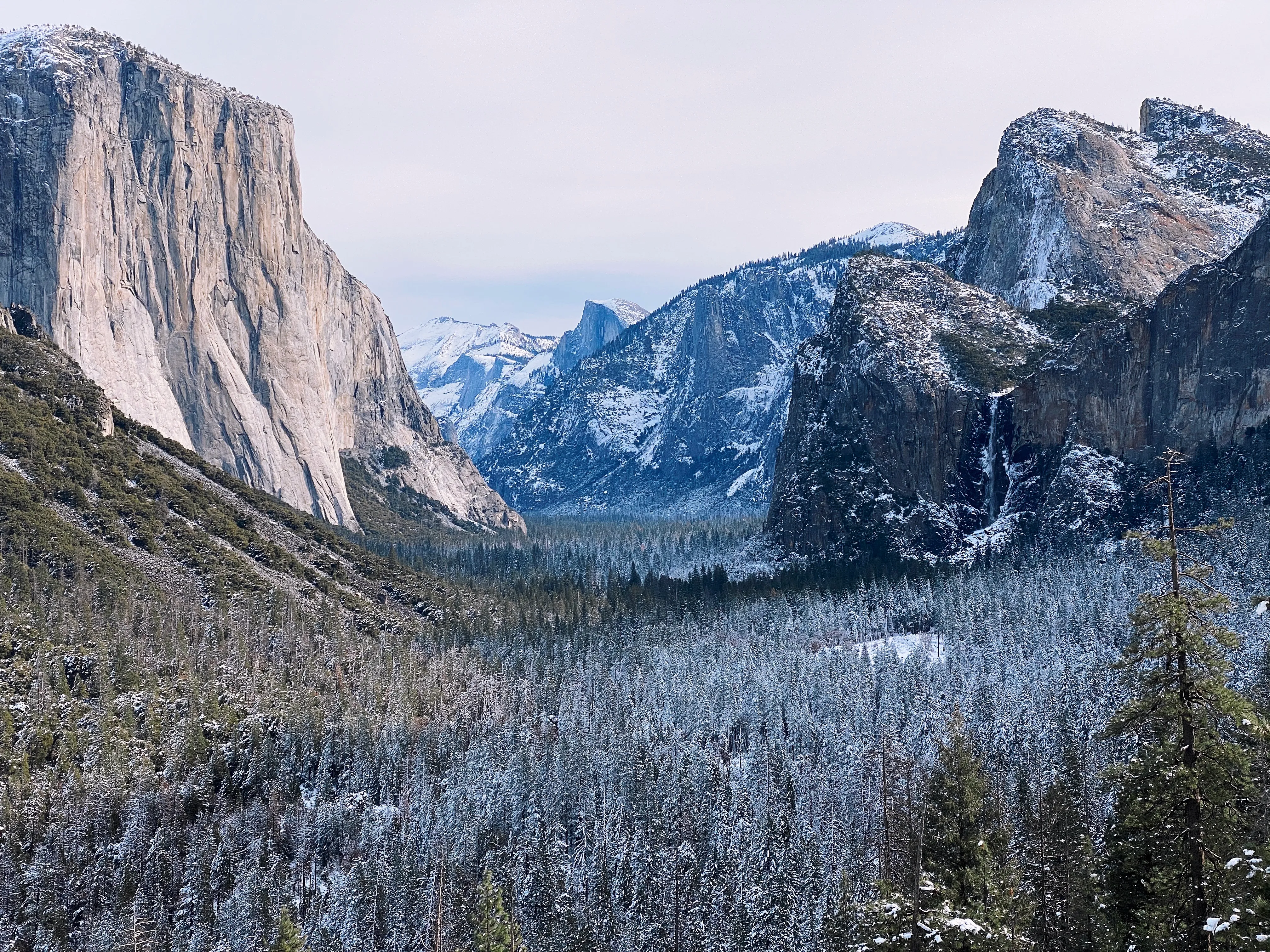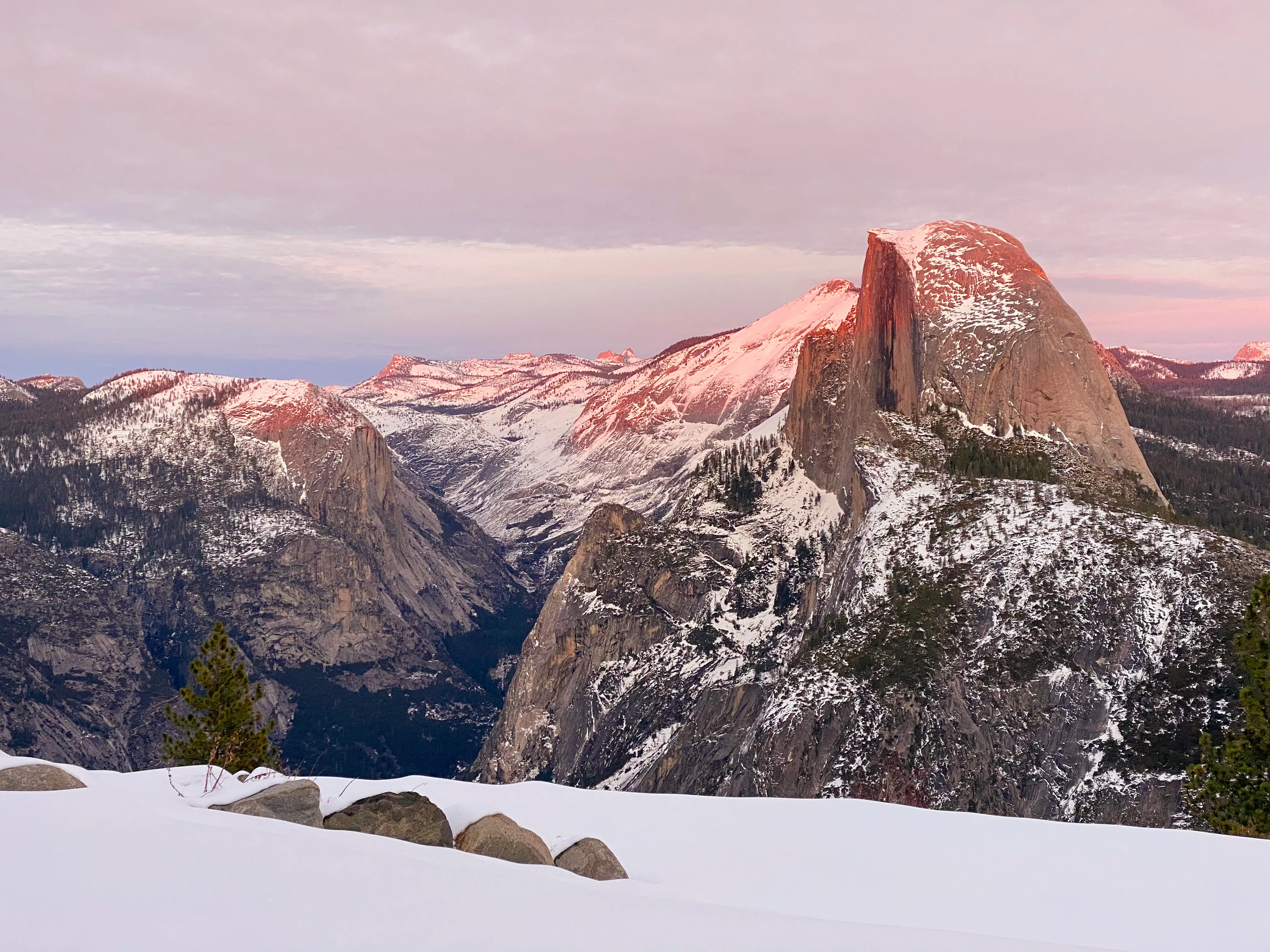 I've hiked and biked to Glacier Point in Yosemite in the summertime but my favorite experience was cross country skiing with a few friends in the winter. Crowds cover the landscape in the high season but we had the place to ourselves in January.