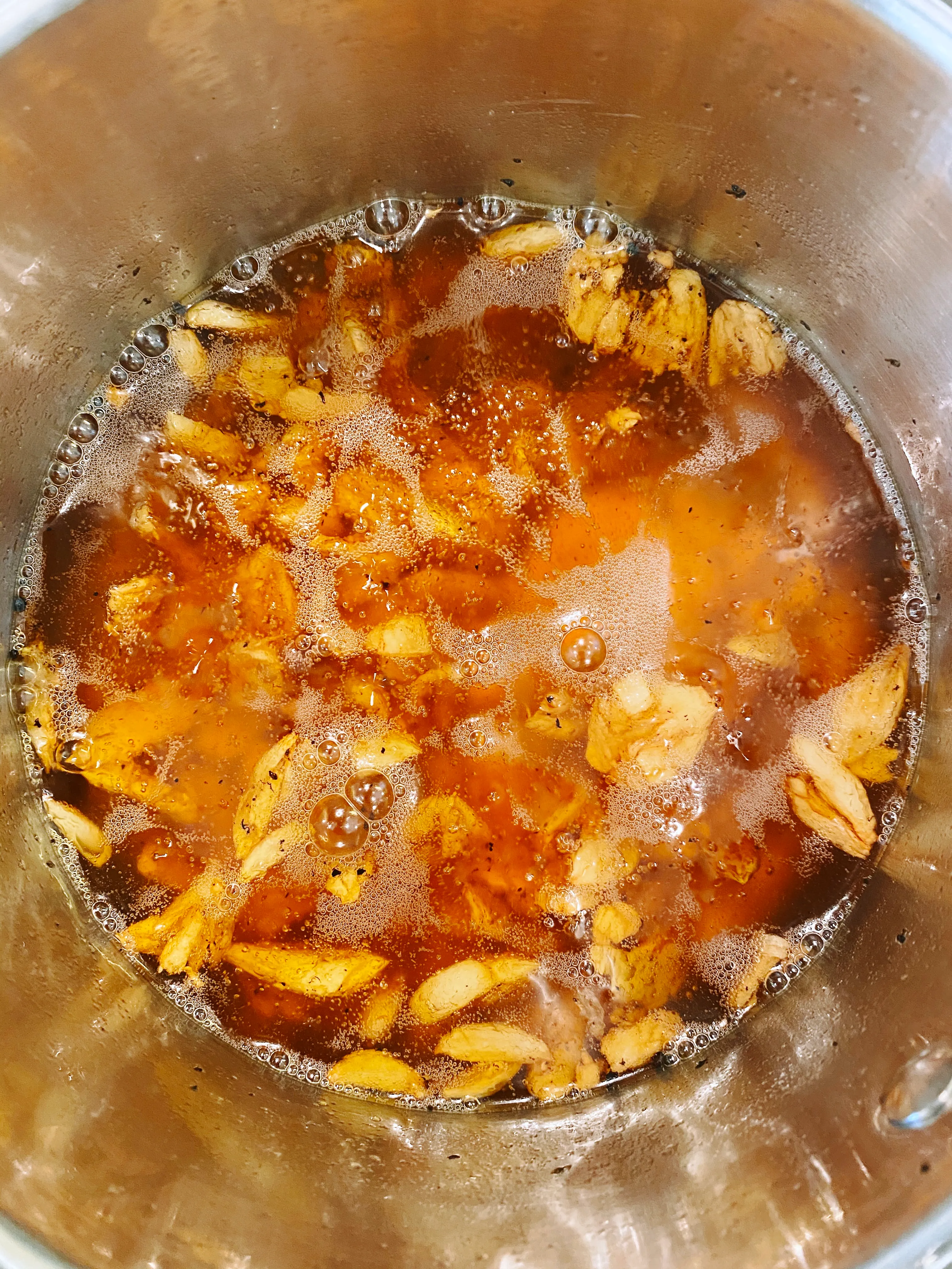 Let them simmer in it for about 10 minutes, watching to make sure there are always small bubbles rising in the pot but that it's not frying at a raucous boil. You may need to turn your stove back on to the lowest possible heat setting if the bubbles come to a stop.